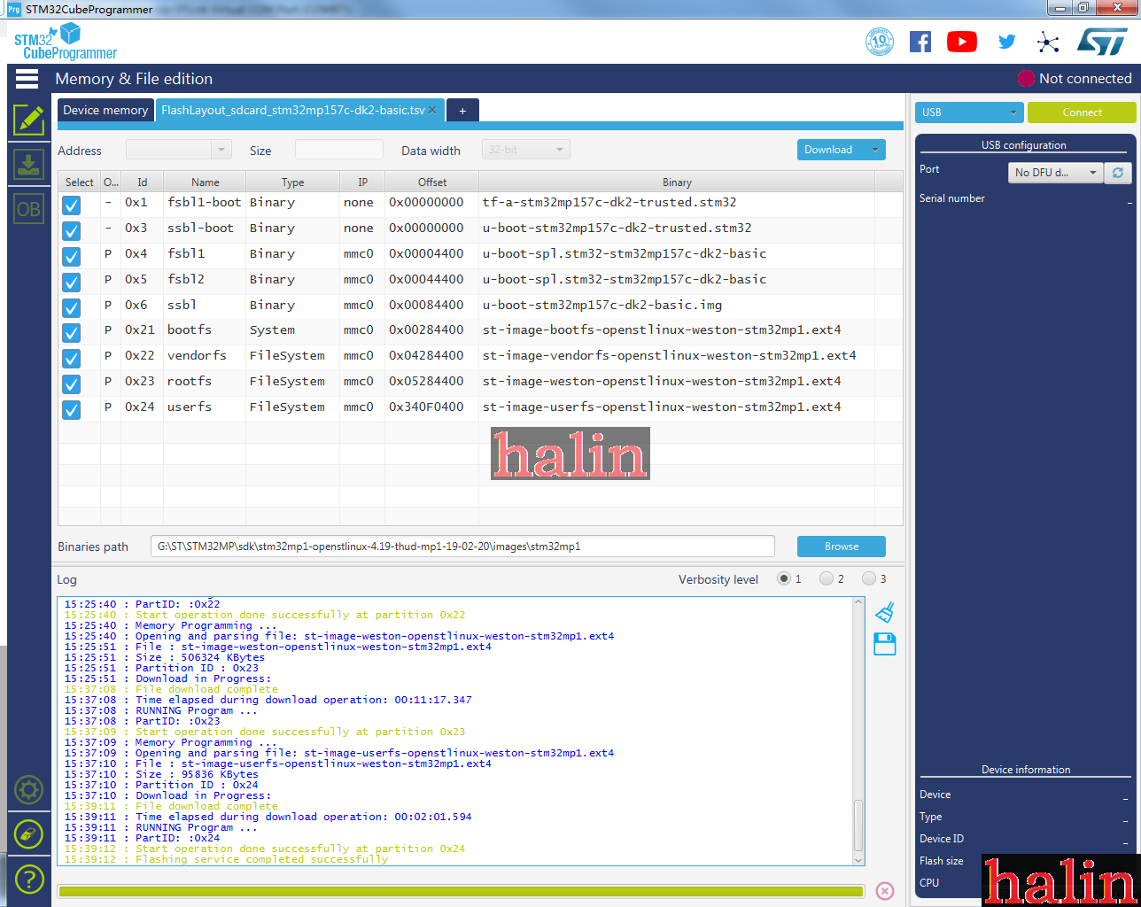 就可以在window下通过STM32CubeProgrammer给STM32MP15X下载固件了