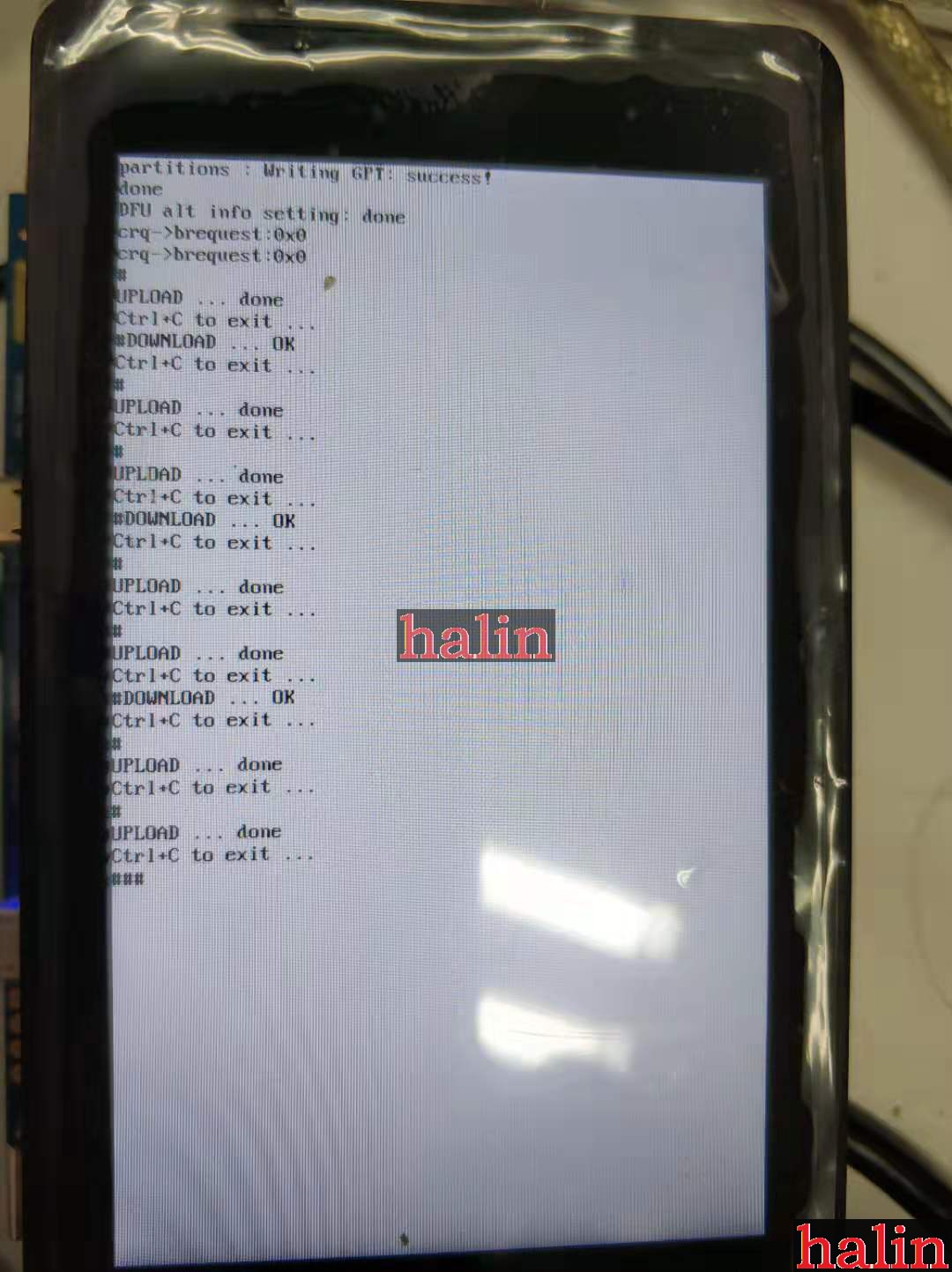烧录过成功,如果DK2接了LCD,LCD会显示一些文字信息: