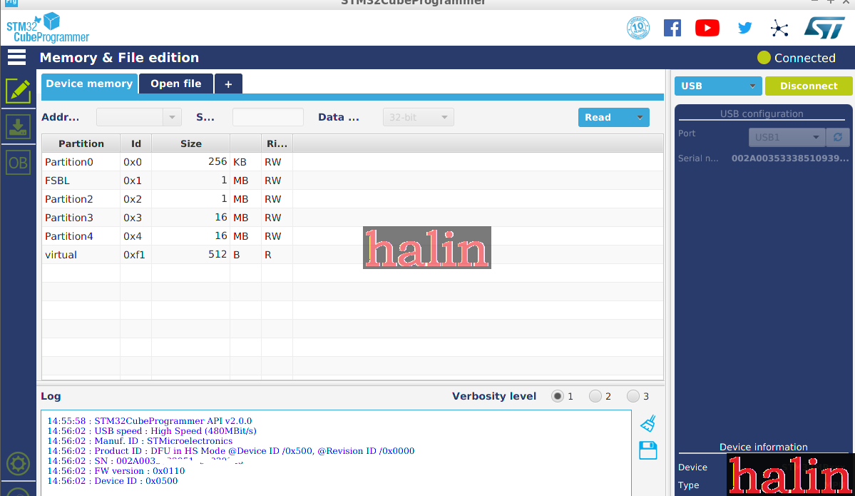 halin@halin-PC:~/STMicroelectronics/STM32Cube/STM32CubeProgrammer/bin$ sudo ./STM32CubeProgrammer