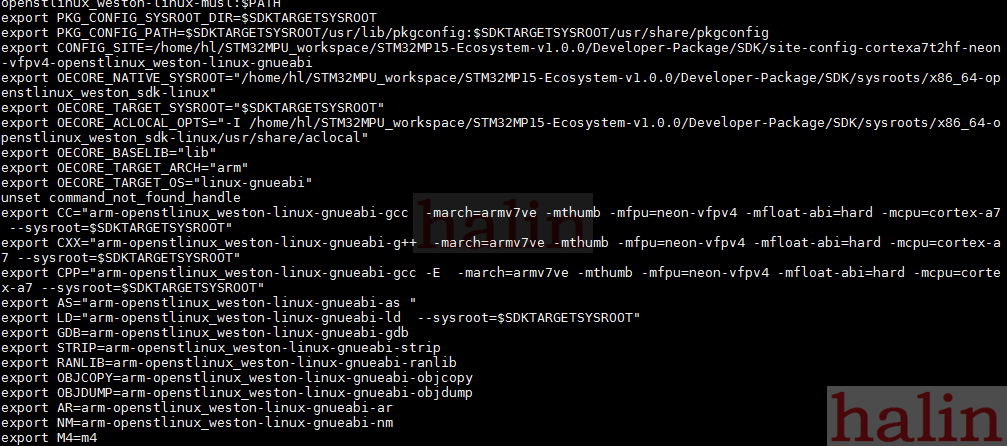source $HOME/STM32MP/SDK/environment-setup-cortexa7t2hf-neon-vfpv4-openstlinux_weston-linux-gnueabi